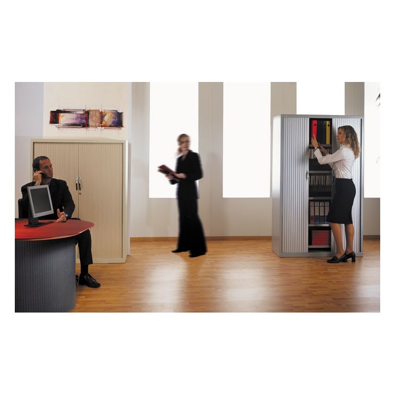 Fabricado en chapa de acero laminada en frío de entre 0,8 y 1,2 mm, cumple con la categoría DC01 – Acero EN-10130, lo que garantiza una elevada resistencia estructural y una larga vida útil incluso en espacios de trabajo de uso intensivo. El interior incorpora estantes metálicos regulables en altura, preparados para carpetas colgantes, lo que permite adaptar fácilmente el espacio de archivo según las necesidades de cada oficina. Esta versatilidad facilita una organización eficiente de documentos, archivadores o material de trabajo. El armario metálico NG se suministra montado de fábrica, lo que permite utilizarlo inmediatamente tras su entrega. Además, está disponible en diferentes colores y configuraciones, lo que facilita su integración en distintos entornos profesionales y estilos de oficina.