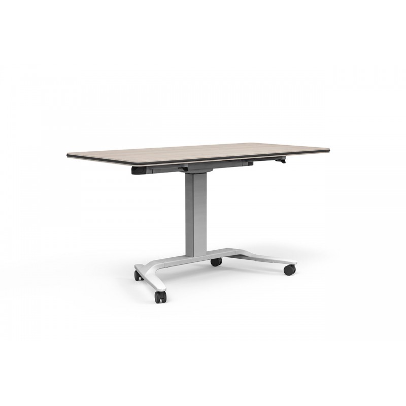 Fabricada por Actiu. Superficie de Melamina de 25 mm con canto de PVC y goma amortiguante. Tablero Abatible con Sistema de bloqueo/desbloqueo. Ménsula de inyección de aluminio en acabado blanco, negro y aluminizado recubiertos con pintura epoxi. Codo de unión de columnas y largueros en aluminio inyectado. Embellecedor protector de Polipropileno. Sistema de elevación de la mesa mediante bomba de gas compensada. Larguero retranqueado de aluminio extruido de 73x70 y e=2 mm, con tope para apoyo de seguridad del tablero. Columna central telescópica en aluminio extruido con dos secciones de 110x80 y 100x70 mm y e=2 mm, con elevación mediante cilindro de gas, en acabado blanco, negro y aluminizado recubiertos con pintura epoxi. Pies con entronque lateral, de inyección de aluminio en acabado blanco, negro y aluminizado recubiertos con pintura epoxi y acabado en aluminio pulido. Protección de apilamiento en pies. Ruedas negras de 65 mm de diámetro. 2 con freno y 2 sin freno. Se sirve desmontada. Complementos no incluidos en el precio (electrificación, cajones, armarios, etc.) Se sirve desmontada. Recuerde que el transporte no está incluido en el precio. Las imágenes son orientativas, lea detenidamente la descripción del producto y configúrelo con las distintas opciones disponibles. Para más información llámenos