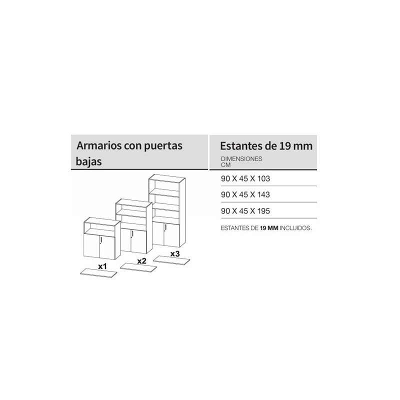 Armario puertas abajo Tendencias con estantes incluidos, 3 alturas a escoger